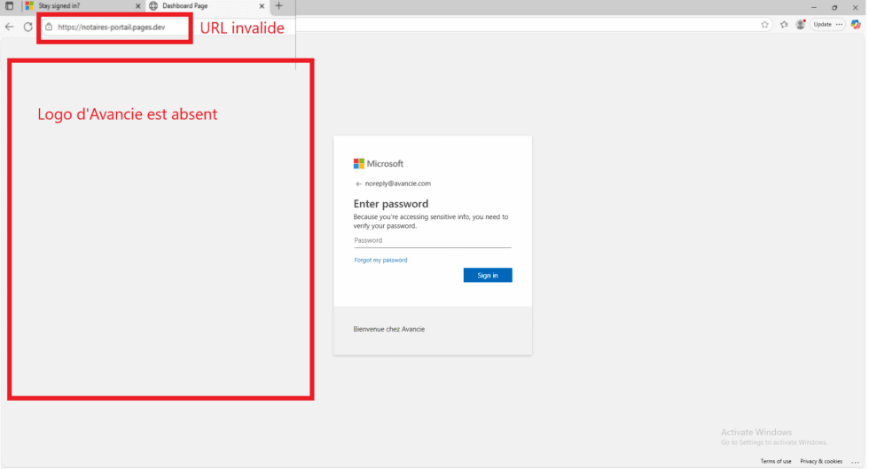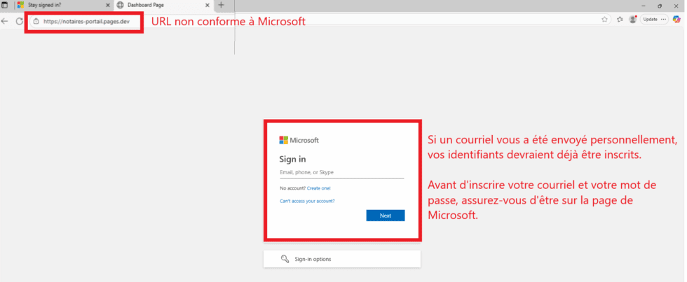 Un faux lien peut ressembler à ceci: ❌ https://notaires-portail.pages.dev